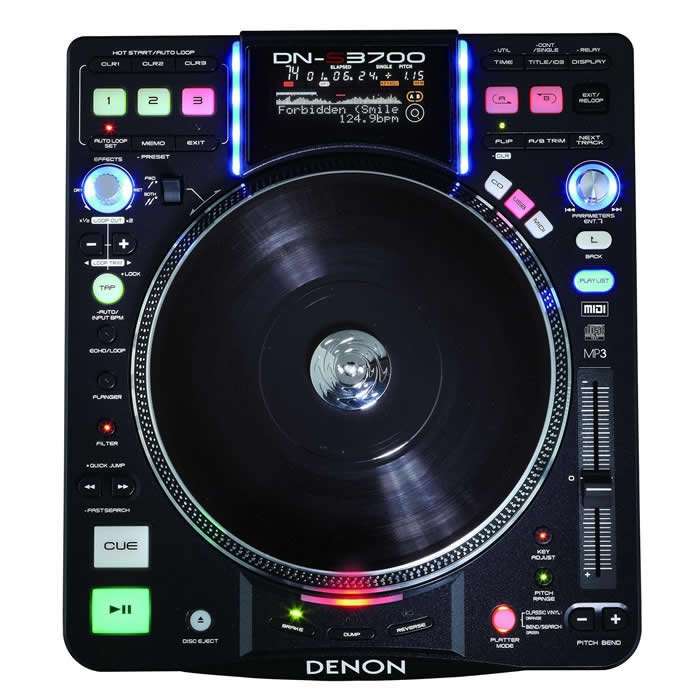 The Denon DN-S3700 Direct Drive Turntable Media Player and Controller is a solid, single-deck portable DJ instrument that provides working DJs with a host of useful features for enhanced creative flexibility. Most notably, thanks to its large 9" spinning platter design, the DN-S3700 literally offers the "best of both worlds" from both digital and analog realms. In addition to a host of advanced digital features, including USB and MIDI control, the sleek and elegant media player includes a built-in authentic vinyl record for surface control driven by Denon DJ's High Torque Direct Drive motor. This provides users with the classic and unmistakable feel of true vinyl.