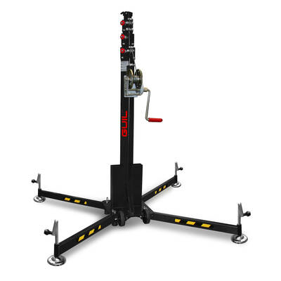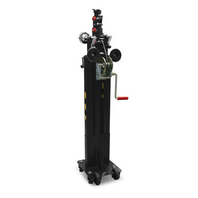 Telescopic lifting tower. Maximum height: 4.50 m Maximum Load:125kg Dimensions: 300 x 380 x 1450 mm Kg: 42 - Colour: Black, , Material: Steel, Adaptors: 35mm