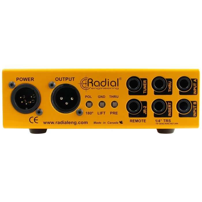 Sahne ve stüdyo için tasarlanmış yüksek çıkışlı DI box. 2 input ve her biri için ayrı gain ve remote düğmeleri. Rezonansı engelleyen değişken high pass filter. Radial'ın ödül kazanmış zero negatif feedback Class A'sı ile 12Ax7 'i birleştirmiştir.