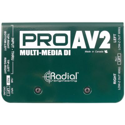 Radial ProAV1 ve ProAV2 özellikle AV uygulamaları düşünülerek tasarlanmış pasif DI Box modelleridir. ProAV1, sinyal yönetimini kolaylaştıran dirençli bir mikser ile birleştirilip monoda toplanmış çok sayıda stereo girişe sahipken, ProAV2 eksiksiz 2 kanal stereo fonksiyonuna sahiptir. Çeşitli adaptör ihtiyacını ortadan kaldırmak amacıyla enstrümanlar için 1/4", elektronik ekipmanlar ile bilgisayarlar için RCA ve 1/8" bağlantıları ve profesyonel sistemler için +4dB XLR giriş gibi birçok farklı bağlantı yolları eklenmiştir.
