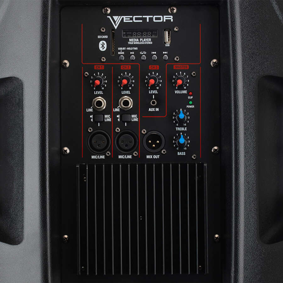 | Inputs | 2 x Balanced XLR with mic/line switch, 2 x 6.3mm single ended jack inputs, 1 x 3.5mm stereo jack in, media player with Bluetooth V5.0, USB and SD card. |